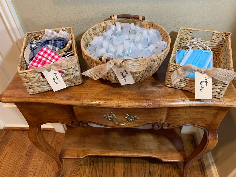 As a mom of three, it’s inevitable at some point, someone will forget a mask. I keep a large Ziploc bag of paper masks in the center console of my car. This has even saved me on a mom-brain day when I forget my own mask! The clear bag makes it easy to see when your back-up stash is getting low.
